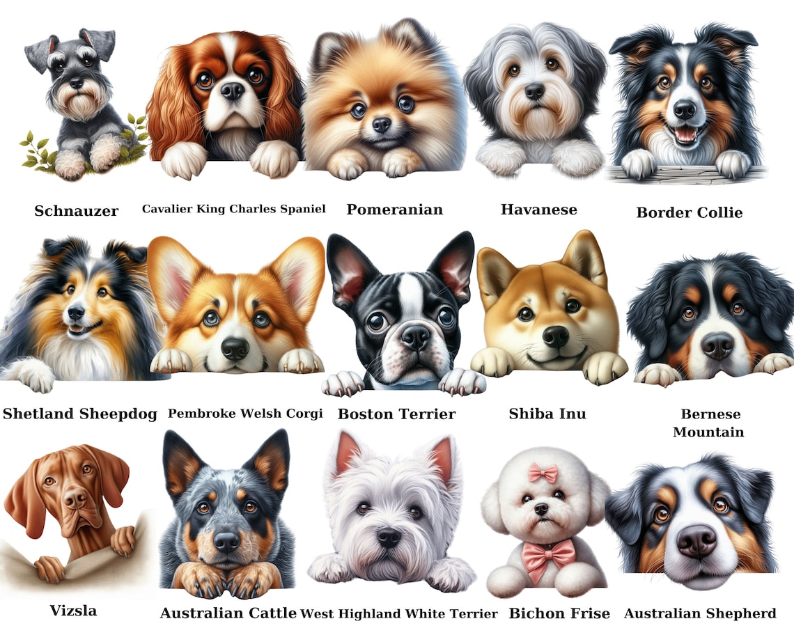 Peeking Dog Portrait Bundle: 40 Breeds PNG, SVG, JPG (Digital Download)